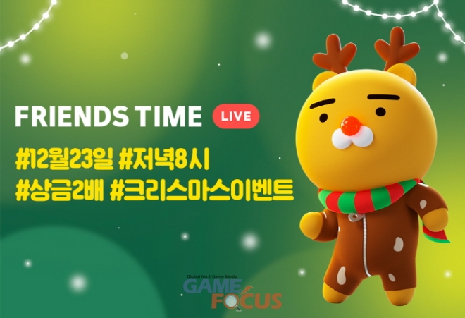 카카오게임즈(각자 대표 남궁훈, 조계현)는 23일(월), 실시간 인터랙티브 방송 ‘프렌즈타임’의 크리스마스 기념 스페셜 방송을 진행한다.