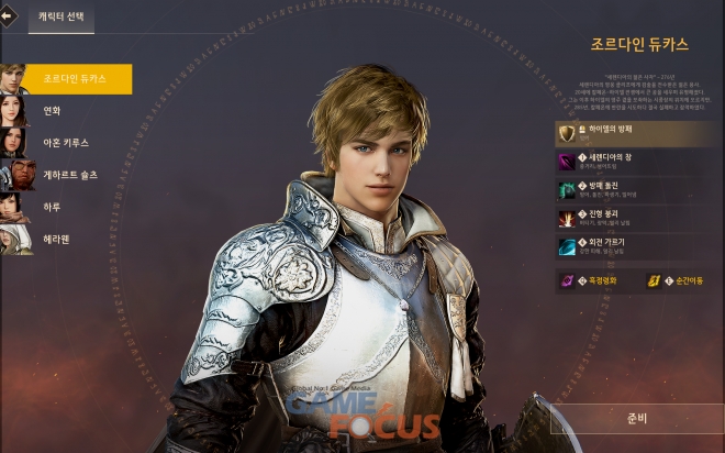 '조르다인 듀카스'는 검은사막 이용자에게 잘 알려진 NPC다. 표준적이면서 단단한 영웅으로 방어, 견제, 콤보까지 갖추고 있다. 방패를 활용한 막기 기술을 통한 안정적인 기술 연계가 특징이다. 다른 캐릭터에 비해 공격 속도가 다소 느린편이기 때문에 적의 공격을 막고 기술을 사용해 적을 제압하는 것이 중요하다.