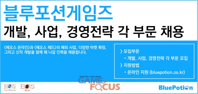 블루포션게임즈(대표 신현근)가 '에오스 온라인'과 '에오스 레드'의 게임 개발 및 사업, 경영전략각 부문별 채용을 진행한다.