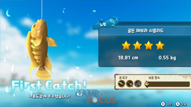 잡은 어종은 도감에 기록되며, 자신이 낚은 모든 어종의 종류와 크기, 무게를 확인할 수 있다. 어종의 크기와 무게에 따라 4단계로 나뉘어 등급이 표시되므로, 플레이어는 더욱 높은 등급의 어종을 낚으며 도감을 완성해 나가게 된다.