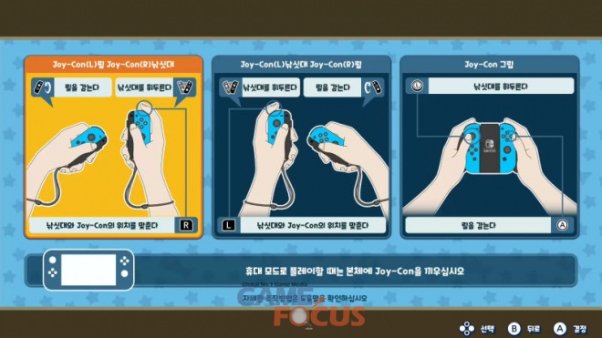 이번 작품은 기본 조작을 포함하여 Joy-Con의 자이로 센서를 적극적으로 활용하고 있으며, 플레이어의 조작법에 따라 세 가지의 플레이 스타일 중 원하는 방식을 선택할 수 있다.