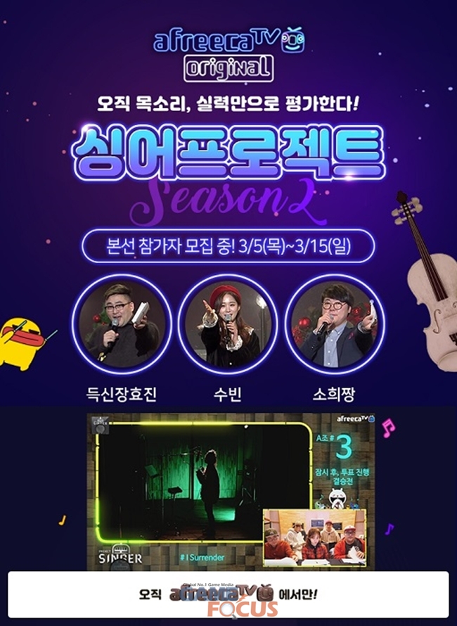 아프리카TV가 '싱어프로젝트 시즌2' 3월 참가자 모집을 시작했다.