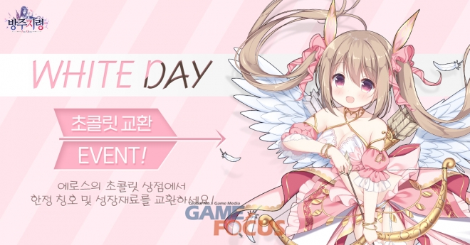 먼저, 9일부터 15일까지 총 7일동안 매일 게임 접속 시 다양한 아이템들을 선물로 지급하는 푸시 이벤트를 진행 중이며 게임에서는 출석체크나 전투 등에서 전지 소모 시 '초콜릿' 아이템을 지급한다. 초콜릿 아이템은 화이트데이 이벤트 기간동안만 제공하는 특별 아이템으로 화이트 데이 전용 교환상점인 에로스의 계절상점에서 한정 칭호나 성물 등 다양한 아이템으로 교환이 가능하다.