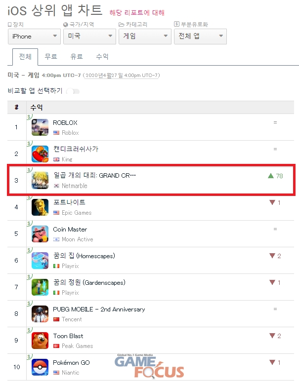 이 게임은 국내 시간 28일 오전 9시 기준, 모바일 앱 마켓 분석 사이트 앱애니의 애플 앱스토어 매출 순위에서 북미 3위, 프랑스 1위, 독일 1위를 기록하며 웨스턴 지역 핵심 시장에서 좋은 성적을 거두고 있다. 또, 대만, 홍콩 등 아시아 주요국에서도 매출 순위 1위에 이름을 올렸다.