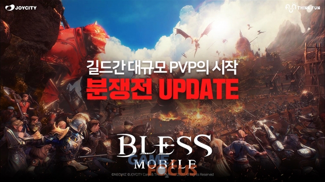 조이시티(각자 대표 조성원, 박영호)가 자회사 씽크펀(대표 오용환)에서 개발한 모바일 MMORPG '블레스 모바일'에서 신규 GvG 콘텐츠인 '분쟁전'을 업데이트했다.