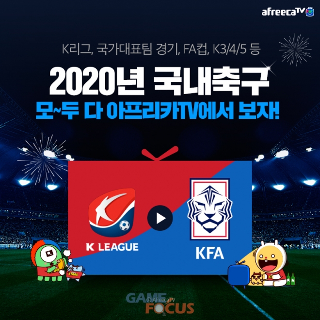 이와 함께 아프리카TV는 2020년에 진행되는 대한민국 축구 국가대표 팀의 경기와 대한축구협회(KFA)에서 주최하는 FA컵, K3·4·5리그 등 다양한 국내 축구 경기의 중계권도 확보하며 스포츠 중계 서비스의 범위를 확장했다.