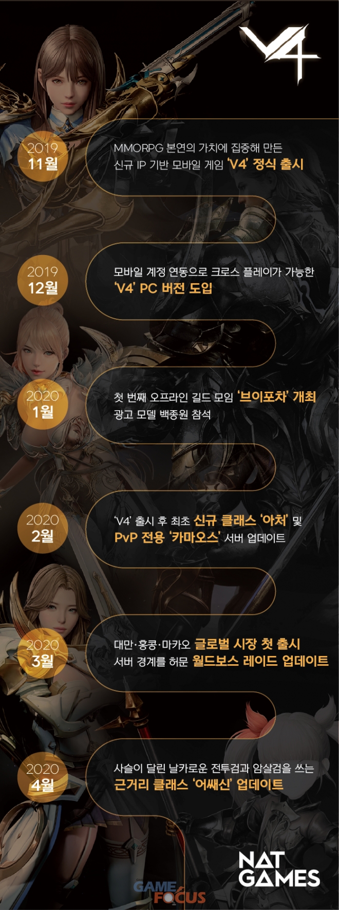 2019년 11월: MMORPG 본연의 가치에 집중해 만든 신규 IP 기반 모바일 게임 'V4' 정식 출시