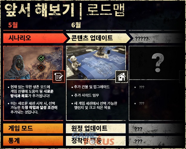 추가로 로드맵을 갱신하며 6월 업데이트 예정 콘텐츠가 공개되었다. 앞으로도 새로운 콘텐츠를 지속적으로 추가하며 유저들의 의견에 귀를 기울여 게임을 보강할 예정이다.