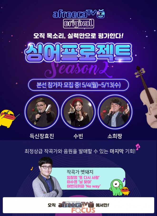 아프리카TV '싱어프로젝트 시즌2' 참가자 모집 실시
