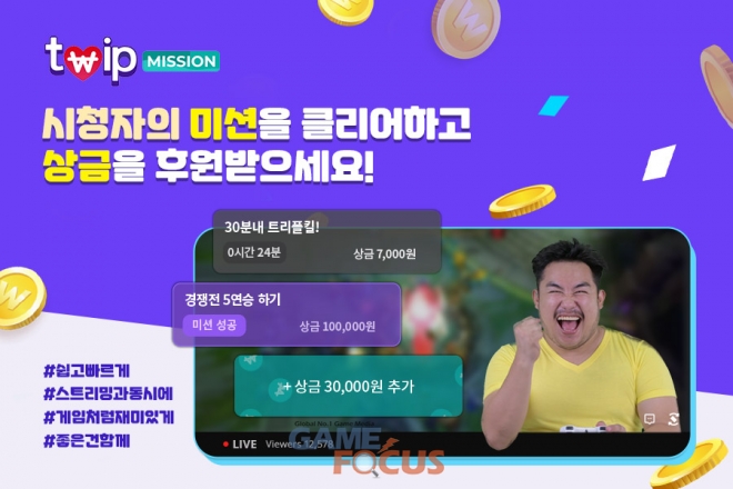 이번에 업데이트 된 '트윕 미션(Twip MISSION)'은 누구나 사용할 수 있으며, 시청자는 스트리머에게 미션을 요청하고 스트리머는 미션을 진행해 상금을 획득할 수 있다.