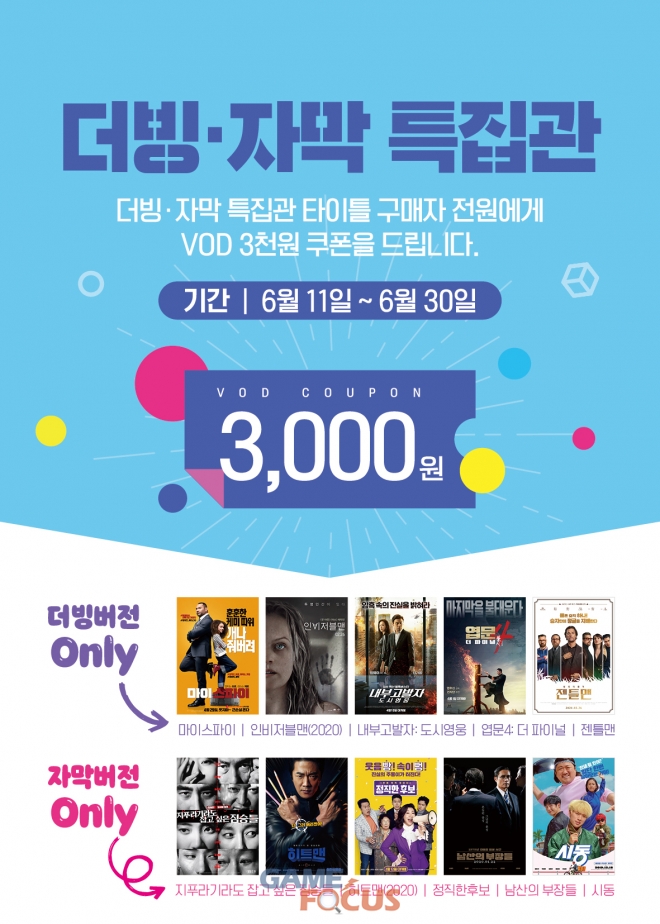 자막·더빙 VOD 서비스로 시청각 장애인과 시니어, 어린이, 우리말에 익숙하지 않은 외국인, 다문화 가정 가족들이 편안하게 영화를 즐길 수 있을 것으로 기대된다. 아울러 오는 11일부터 30일까지 해당 작품을 구매하는 고객 전원에게 VOD 3천원 쿠폰이 주어진다.