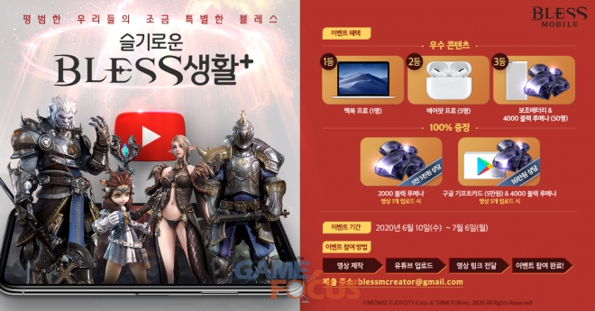 '슬기로운 블레스 생활'은 '블레스 모바일'의 주요 콘텐츠나 공략법을 소개하는 등 해당 게임에 관한 자유 주제의 영상을 출품하는 공모전으로, 최소 3분 이상의 유튜브 영상 제작을 통해 누구나 참여할 수 있다.