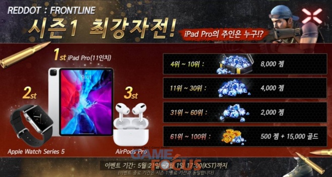 게임 내에서도 다양한 이벤트가 진행되고 있다. 첫 시즌 종료와 동시에 랭킹 100위 안에 위치한 유저들에게도 푸짐한 상품이 지급되는 '시즌1 최강자전' 이벤트가 진행되고 있으며, 특히 랭킹 1,2,3등에게는 아이패드 프로, 애플워치 시리즈5, 에어팟프로 등 푸짐한 상품이 지급된다.