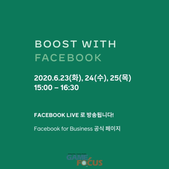 ‘부스트 위드 페이스북 2020’은 누구나 참여가 가능하며 Facebook for Business 페이지에서 전체 공개로 진행된다. 라이브로 진행되는 만큼 지역과 인원에 대한 제한이 없으며, 사전등록 시 안내 사항과 참고 자료 등을 사전에 받아볼 수 있다.