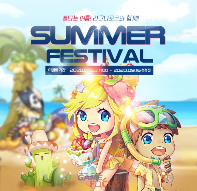 먼저 '썸머 페스티벌'은 7월 22일 점검 후부터 9월 23일 점검 전까지 진행되며 총 3종으로 구성되어 있다. 첫 번째로 '경험치 이벤트'는 이벤트 기간 동안 전서버에 캐릭터 경험치가 30% 증가하며 매주 금요일 오후 12시부터 월요일 오전 10시까지 주말 버닝 경험치 30%가 추가된다. 또한 8월 5일 점검 후부터 9월 23일까지 낙원단 퀘스트 경험치가 50%, 일루전 보상 경험치가 30% 증가한다.