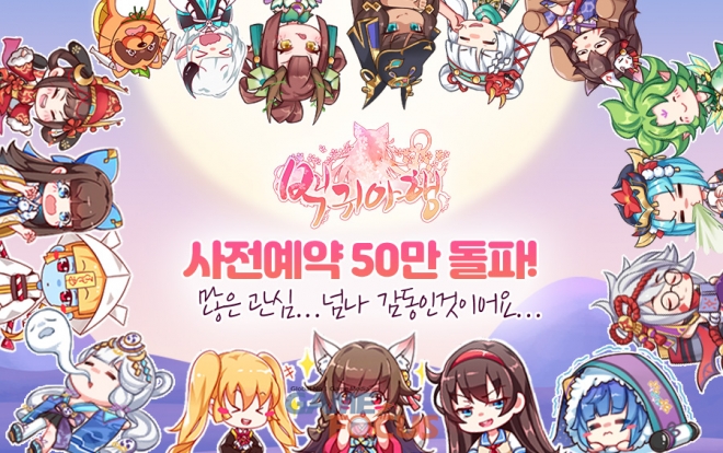 더블디게임즈(대표 장민호)가 서비스할 예정인 미소녀 방치형 RPG '백귀야행'의 사전예약자 수가 50만 명을 돌파했다.
