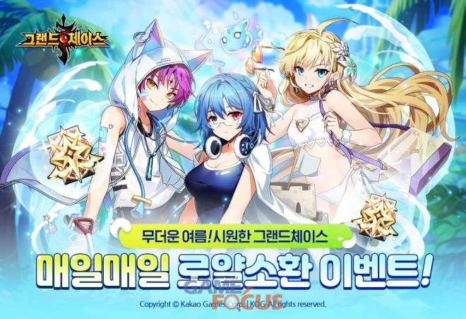 더불어, 모바일 RPG '그랜드체이스'는 기존에 등장했던 '이오', '에우로파' 등의 여름 수영복 아바타와 더불어 오는 18일(화)과 25일(화) 각각 영웅 '마리'와 '넬리아' 수영복 아바타 공개를 예정하고 있다. 또, '매일매일 로얄소환' 이벤트를 진행해, 매일 30분 이상 누적 접속한 이용자를 대상으로 개당 영웅을 10회 소환할 수 있는 '로얄 소환 티켓'을 10개씩 제공하며 다채로운 재미를 더 한다.