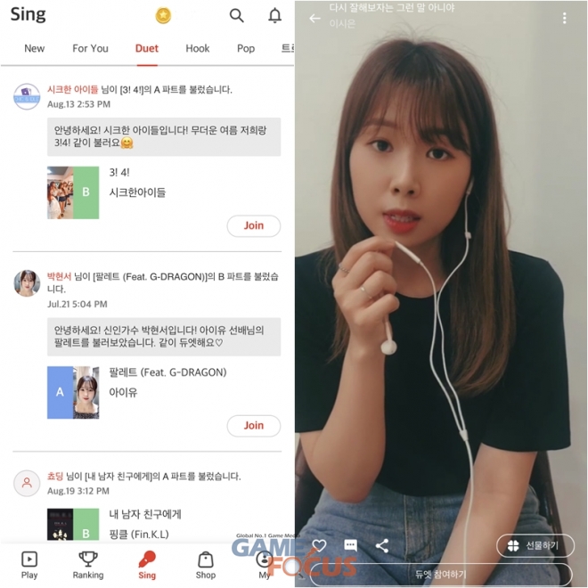 한편 '싱잇'은 이어폰만 있으면 실제로 노래방에 온 것처럼 내 목소리를 들으면서 노래를 할 수 있다. 내가 부른 노래를 주변 사람에게 공유할 수 있고, 반대로 다른 사람들이 부른 노래도 내가 볼 수 있게 노래를 전세대, 전세계적으로 공유할 수 있다.