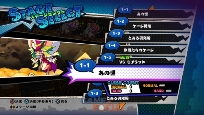 'PLAY' 모드로 클리어한 스테이지를 다시 한번 플레이해 보자. 스테이지에 흐르는 악곡은 변경이 가능하니, 좋아하는 악곡으로 하이 스코어를 노려보자. 데모 화면도 다시 볼 수 있어 매드 래트와 하트의 만담을 반복해서 즐길 수 있다.