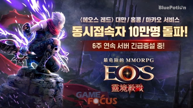 블루포션게임즈(대표 신현근)가 개발하고 서비스하는 모바일 정통 MMORPG '에오스 레드'가 첫 해외 진출 지역인 대만/홍콩/마카오에서 동시접속자 10만 명을 돌파했다.