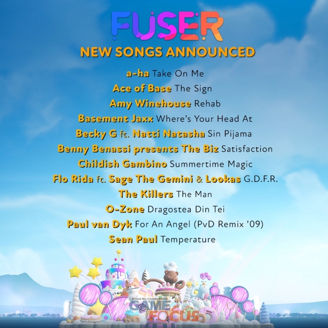 퓨저는 세계 정상급 아티스트의 노래가 포함된 12곡을 추가 공개했다. 퓨저에는 팝, 랩/힙합, R&B, 댄스, 록, 컨트리뮤직, 라틴 및 중남미 음악 등 다양한 장르의 노래 100곡 이상이 수록될 예정이다.