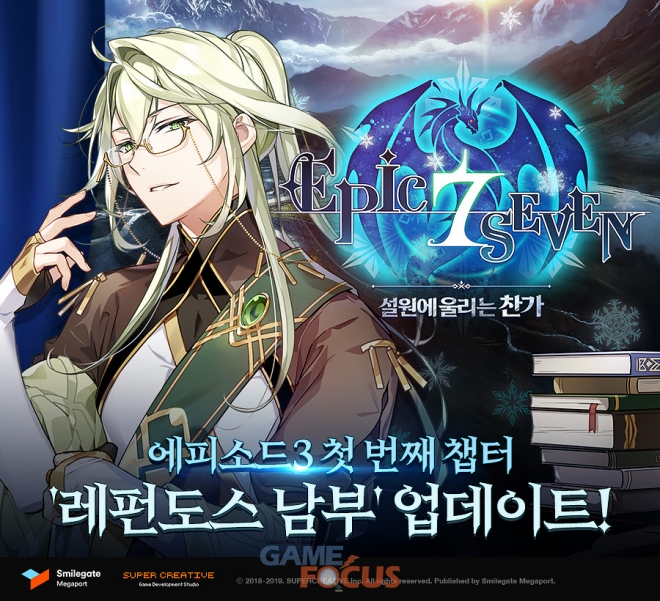 스마일게이트 메가포트(대표 장인아)가 자사에서 서비스하고 슈퍼크리에이티브(김형석, 강기현 공동대표)가 개발한 모바일 턴제 RPG '에픽세븐'의 신규 대륙에서 펼쳐지는 새로운 메인 스토리 '에피소드3: 설원에 울리는 찬가'를 오픈했다.