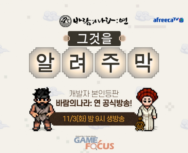 11월 3일 오후 9시부터 아프리카TV '바람연TV공식' 채널과 공식 유튜브를 통해 진행하는 공식 방송에는 MC 허준과 BJ우레, 이태성 디렉터가 출연해 '바람의나라: 연'과 관련된 다양한 주제에 대한 이야기를 나눌 예정이다.