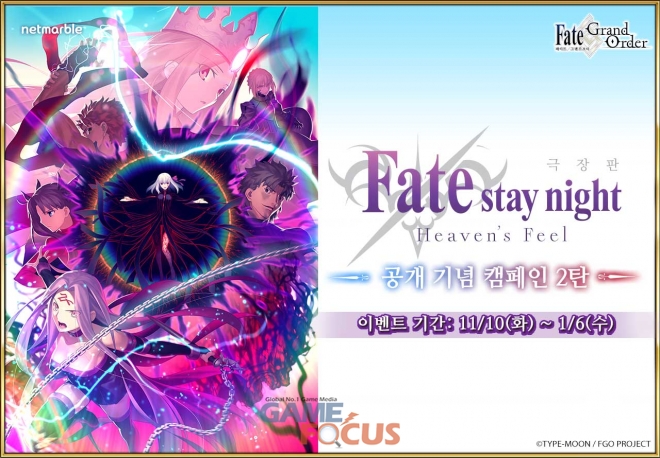 넷마블(대표 권영식,이승원)이 자사가 서비스 중인 모바일 RPG '페이트/그랜드 오더'(Fate/Grand Order)에서 극장판 '페이트/스테이 나이트 [헤븐즈필]' 공개를 기념한 캠페인을 2021년 1월 6일까지 실시한다.