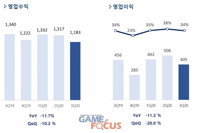 펄어비스(대표 정경인)가 2020년 3분기 실적 발표를 통해 연결기준 3분기 매출 1,183억 원, 영업이익 405억 원을 기록했다.