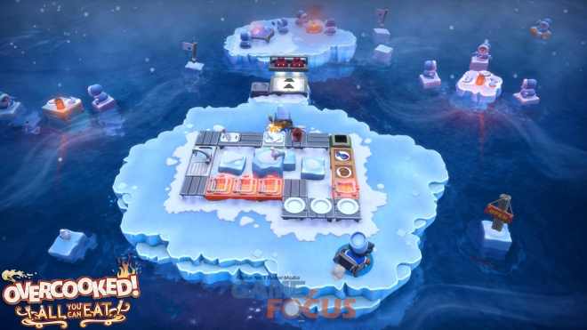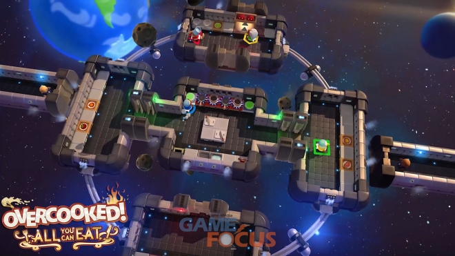 포탈을 통한 이동, 움직이는 발판 등을 활용하여 무대를 자유롭게 이동하고, 협력과 경쟁을 통해 최고의 요리를 만들자. 상대에게 재료를 던져 시간을 단축하고 방해하는 등 다양한 방법으로 주방을 지배하자.