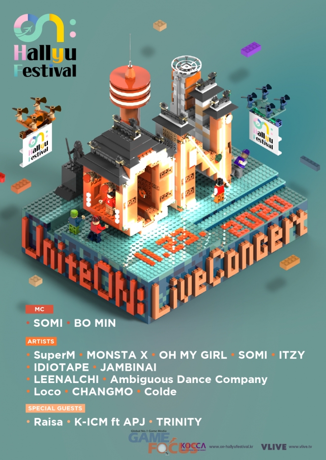 이번 축제의 하이라이트는 23일 진행되는 온라인 K팝 공연과 팬미팅 'Unite On: Live Concert'다. 이 행사에는 ▲슈퍼엠(SuperM) ▲몬스타엑스(MONSTA X) ▲오마이걸(OH MY GIRL) ▲있지(ITZY) ▲전소미 ▲골든차일드 보민 등 한류 아이돌이 출연해 독보적인 퍼포먼스를 선보일 뿐 아니라 전 세계 팬들과의 온라인 만남도 진행한다.
