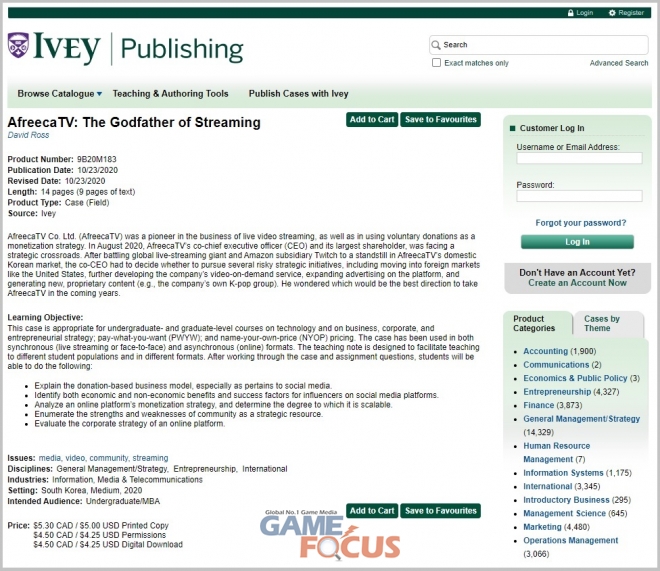 아프리카TV가 구축하고 발전시킨 ‘라이브 방송 생태계’가 해외 유명 비즈니스 스쿨 케이스로 등재됐다.