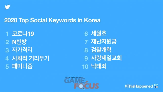 트위터가 2020년 한 해 동안의 전 세계 이용자 트윗과 계정을 분석해 사회 이슈를 공개했다. 분석 기간은 2020년 1월 1일부터 11월 15일까지이며, 글로벌 트위터 데이터와 국내 썸트렌드 비즈 데이터를 분석한 결과다.