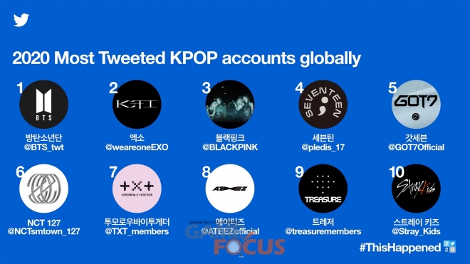 트위터가 2020년 전 세계 트위터 이용자들이 생성한 트윗과 계정을 분석해 '#ThisHappend', '#2020어떤일이' 라는 해시태그와 함께 K-POP 분야 순위를 발표했다.