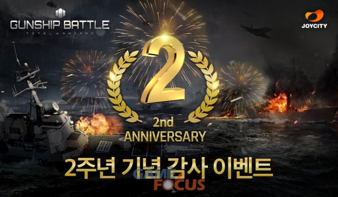 조이시티(각자대표 조성원, 박영호)는 자사가 개발하고 서비스하는 모바일 전쟁 시뮬레이션 게임 '건쉽배틀: 토탈워페어'의 서비스 2주년을 기념해 16일까지 감사 이벤트를 실시한다고 10일 밝혔다.