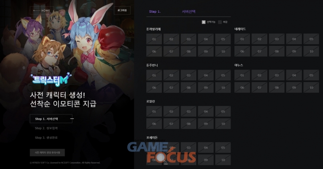 트릭스터M은 오늘(16일) 00시 사전 캐릭터 생성을 시작했다. 준비된 60개 서버가 조기 마감되어 각 서버의 수용 인원을 증설했다. 이용자는 트릭스터M 브랜드 사이트와 엔씨(NC) 크로스 플레이 서비스 '퍼플(PURPLE)'에서 캐릭터와 컴퍼니(길드 시스템)를 미리 만들 수 있다.