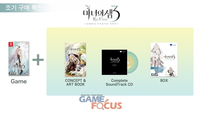 Nintendo Switch '마녀의 샘3 Re:Fine' 패키지 초회 생산제품에는 조기 구매특전이 포함되며, 구성은 다음과 같다.