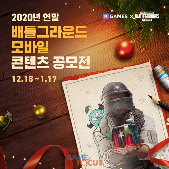 (주)크래프톤(대표 김창한)의 펍지 스튜디오(PUBG Studio, 이하 펍지)가 네이버 게임과 함께 '플레이어언노운스 배틀그라운드(PUBG, 이하 배틀그라운드) 모바일' 2020 연말 콘텐츠 공모전을 개최한다고 밝혔다.