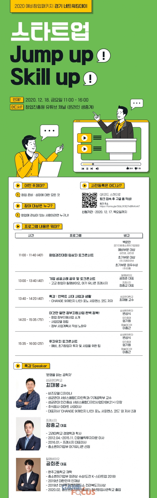 ‘스타트업 Jump UP! Skill UP!’은 예비·초기창업자, 선배기업, 투자자 간의 실시간 만남 및 양방향 소통을 통한 협력 네트워크의 장을 구축하기 위해 마련된 행사이다.