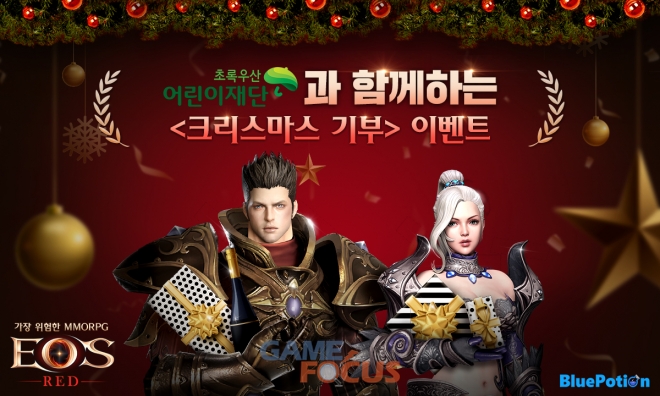 먼저, 초록우산 어린이재단 후원을 통해 따뜻한 크리스마스를 함께하기 위한 기부 이벤트를 진행한다. '에오스 레드' 게임 내에서 소액의 게임머니를 기부하는 이벤트가 진행되며, 블루포션게임즈는 이벤트에 참여한 유저들을 대신하여 초록우산 어린이재단과 함께 저소득층 아동들을 후원할 예정이다.