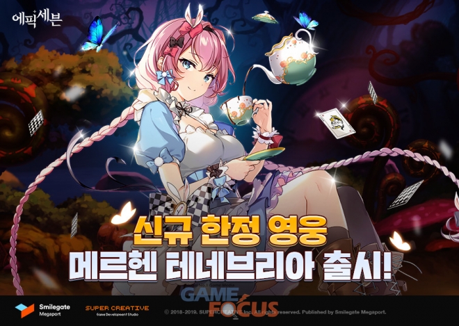 더불어, 커스텀 스토리에 등장하는 새로운 등장인물 '메르헨 테네브리아'를 한정된 기간에만 획득할 수 있는 신규 영웅으로 정식 출시한다. 메르헨 테네브리아는 냉기속성의 마도사 영웅이며 '지정 도발'이라는 새로운 약화 효과를 부여할 수 있는 것이 특징이다. 지정 도발에 걸린 상대는 턴 시작 시 강제로 최대 생명력이 가장 높은 적에게 기본 스킬을 사용하게 된다. 메르헨 테레브리아는 유명 커뮤니티 채널 픽시브를 통해 개최된 에픽세븐 영웅 공모전에서 1등을 차지해 출시 전부터 많은 에픽세븐 팬들의 관심을 받고 있는 영웅이다.