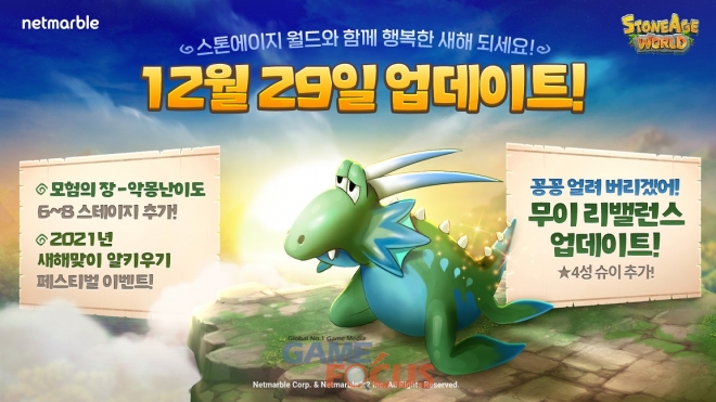 넷마블(대표 권영식, 이승원)은 모바일 턴제 MMORPG(다중접속역할수행게임) '스톤에이지 월드(개발사 넷마블엔투)'에 '무이 계열' 펫의 리밸런싱 등 업데이트를 진행했다고 29일 밝혔다.