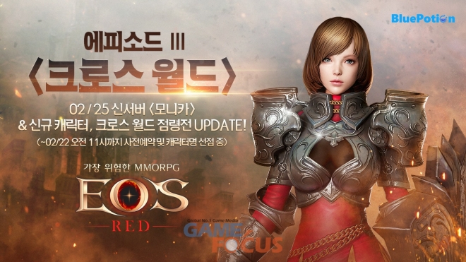 블루포션게임즈(대표 신현근)는 직접 개발하고 서비스하는 모바일 정통 MMORPG '에오스 레드'의 ‘에피소드 3 : 크로스 월드' 사전예약이 4일부터 시작되었다고 밝혔다.
