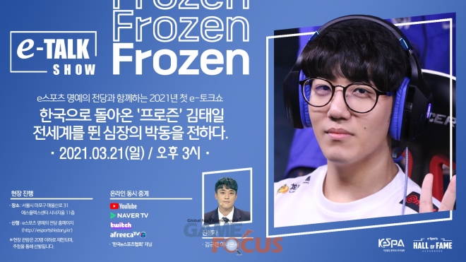 한국e스포츠협회는 15일, 협회가 운영하는 e스포츠 명예의 전당(서울 마)에서 진행하는 ‘e-토크쇼’를 3월 21일(일) 오후 3시에 온/오프라인으로 진행하며, 2021년 첫 연사로 ‘프로즌’ 김태일 전 선수를 초청했다고 밝혔다.