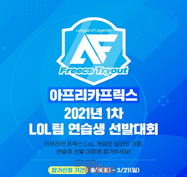 아프리카TV는 3월 8일부터 21일까지 프로게임단 '아프리카 프릭스(Afreeca Freecs)' 리그오브레전드(League of Legends, LoL) 팀의 연습생을 선발할 '아프리카 프릭스 연습생 선발대회'의 참가자를 모집한다고 밝혔다.