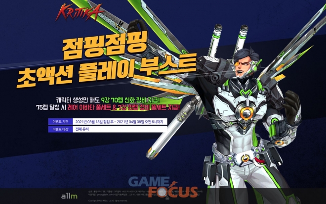 올엠(대표 이종명)이 자사의 액션 RPG '크리티카 온라인'에서 70레벨 점핑 캐릭터 이벤트를 진행한다.