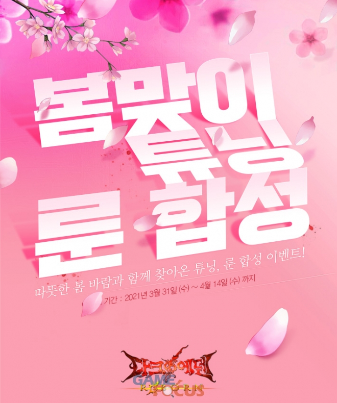 소프톤엔터테인먼트(대표 홍명진)가 자사 호러 액션 MMORPG '다크에덴'에서 싱그러운 봄을 맞이하여 사냥, 튜닝 & 룬 합성 이벤트 3종을 진행한다.