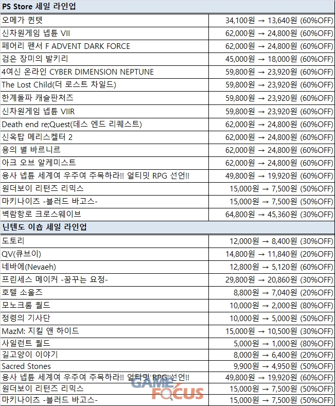 주요 PS Store 세일 라인업
