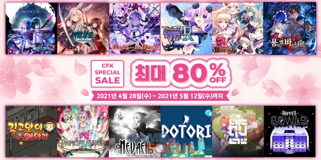 PlayStation 4, 닌텐도 스위치 타이틀로 진행되며 본 세일은 2021년 5월 12일(수)까지 기간 한정으로, PS Store와 닌텐도 이숍에서(CFK 타이틀다운로드 전용)을 저렴하게 할인된 가격으로 만나볼 수 있다.