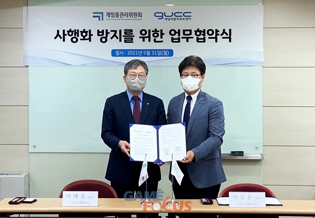 게임물관리위원회(이하 게임위)가 게임이용자보호센터(이하 GUCC)와 5월 31일, 게임위 서울사무소 회의실에서 '사행화 방지를 위한 업무협약'을 체결했다.